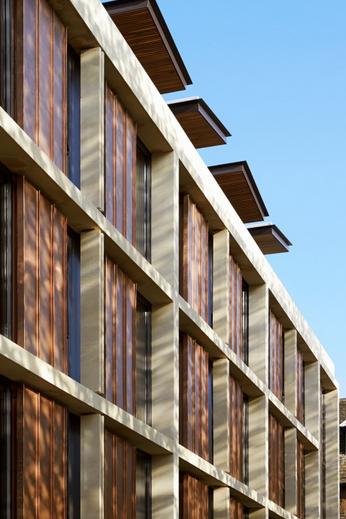 Gli edifici Gateway di cinque piani sono un’aggiunta significativa al complesso del college St. Antony, definendo una sua nuova presenza verso una delle vie principali che servono il centro della città. Il progetto comprende un nuovo ingresso principale, portineria, 54 camere con studio annesso, uffici per il personale universitario e spazio di incontro / lavoro all’interno di padiglioni con tetti vetrati. Il St. Antony è uno dei più recenti college dell’Università di Oxford, ma la proprietà in precedenza scontava la mancanza di presenza e mostrava un gruppo eterogeneo di edifici, in contrasto con la sua acclamata reputazione accademica. Il progetto dello studio Bennetts Associates ha affrontato questi problemi in un modo altamente simbolico, in maniera da radicare saldamente il St. Antony nella tradizione dei college di Oxford. I nuovi edifici annunciano la posizione del collegio bene in vista sulla Woodstock Road, incorniciano una coinvolgente sequenza di ingressi principali e racchiudono il quadrilatero centrale per la prima volta. In combinazione con una forte espressione contemporanea, l’identità fisica del St. Antony è stata trasformata e ora si colloca tranquillamente tra i suoi pari. La tavolozza di pietra Cotswold (un tipo di calcare locale), bronzo e legno di noce è tipicamente oxfordiana nel carattere, anche se fortemente contemporanea. I toni caldi del bronzo si uniscono comodamente con la pietra Cotswold circostante e la patina che si svilupperà nel corso del tempo radicherà gli edifici nel loro contesto, portando un carattere unico e di sviluppo agli edifici. Il bronzo è stato delicatamente articolato per definire ciascuna delle funzioni nell’edificio; lastre con aggraffatura per le camere da letto e pannelli piegati per la portineria, gli uffici e le sale per seminari. Ogni camera studio ha il proprio pannello in bronzo, permettendo agli studenti di identificare la propria camera, mentre la griglia di pietra aggrega il tutto. Fonte http://copperconcept.org/ Ground floor plan ©Bennetts Associates Bedroom floor plan ©Bennetts Associates Site plan ©Bennetts Associates Detailing ©Bennetts Associates Consiglia questo progetto ai tuoi amici Commenta questo progetto