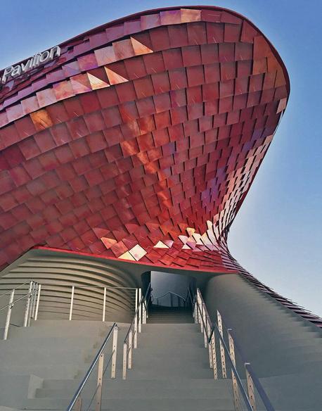 Progettato dall’archistar Daniel Libeskind, con allestimento degli interni di Ralph Appelbaum Associates, sorge in posizione strategica poco distante dal Lake Arena e da Palazzo Italia, imponendosi per la forte carica figurativa che, attraverso l’organica plasticità dell’involucro parametrico, richiama l’attenzione sulle questioni chiave proposte dal tema di Expo 2015 (Nutrire il pianeta), sviluppando il tema “building community through food” attraverso la rivisitazione di un tradizionale Shitang: la sala da pranzo comunitaria cinese. Daniel Libeskind, esplorando i canoni dell’architettura parametrica, ha sviluppato una spettacolare figura organica che si estende su una superficie coperta di 578 metri quadrati, con uno sviluppo di circa 36 metri di lunghezza, 19 di larghezza e 12 di altezza. Il tutto articolato su 3 livelli interni (per un totale di 1000 mq), ai quali si aggiunge, alla sommità, una terrazza verde, con vista panoramica sull’intero sito Expo. L’involucro Di uno squillante colore rosso lacca e l’inconsueta morfologia della figura architettonica definiscono un oggetto che non passa sicuramente inosservato. Non a caso la vermiglia e frattale scocca del Padiglione Vanke, composta da circa 4200 lastre di grès porcellanato rappresenta già una vera e propria icona di riferimento per l’intero campus di Expo 2015. L’effetto è ottenuto grazie a un innovativo sistema di rivestimento in lastre ceramiche, nato dalla collaborazione tra Daniel Libeskind e Casalgrande Padana, sviluppato ad hoc per il Padiglione Vanke. Le lastre Fractile, disegnate dall’architetto secondo un’esclusiva matrice tridimensionale, sono state prodotte in grès porcellanato nel formato 60×120 cm e successivamente tagliate in sottomoduli da 60×60 cm. All’intradosso di ogni singolo elemento, cioè sulla superficie che non rimane a vista, è stata fissata una particolare flangia metallica dotata di elementi di regolazione. Grazie a questo dispositivo, le lastre sono state ancorate a secco a una sottostruttura, costituita da una serie di elementi tubolari che avvolgono l’intero involucro del padiglione. Lo speciale sistema di posa, messo a punto dalla azienda torinese Bodino Enigineering e dalla Divisione Engineering di Casalgrande Padana, consente non solo di fissare le lastre, ma anche di orientarle singolarmente in funzione del progetto. Per enfatizzare la decostruzione delle tradizionali superfici di facciata ortogonali e complanari, si è operato attraverso la parziale e libera giustapposizione degli elementi ceramici, definendo una tipologia di rivestimento decisamente innovativa. L’originale disegno geometrico a bassorilievo delle lastre, enfatizzato da una finitura superficiale a velatura metallescente, fa sì che la materia ceramica si scomponga e ricomponga in molteplici riflessi capaci di dinamizzare l’involucro a ogni mutamento della luce naturale incidente. Interni Le sorprese del Padiglione Vanke non si fermano all’esterno. Il padiglione racchiude infatti un grande spazio, dove una struttura tridimensionale di bambù (circa 8000 metri lineari di canne impiegate) scandisce il percorso espositivo, fornendo al tempo stesso un etereo supporto ai 300 schermi LCD installati per proporre ai visitatori immagini, informazioni e suggestioni su alcuni momenti della tradizione conviviale cinese, attraverso lo Shitang (la sala da pranzo collettiva), i costumi culinari, gli oggetti d’uso corrente – il tutto letto criticamente attraverso i nuovi comportamenti introdotti dalla globalizzazione. All’interno di questo palinsesto, alcune aree privilegiate sono state pavimentate con lastre in grès porcellanato da 60×60 cm, appositamente realizzate da Casalgrande Padana attraverso una particolare lavorazione delle superfici, che richiama il pattern disegnato da Libeskind per l’involucro. Una testimonianza ulteriore della flessibilità creativa del materiale ceramico e della capacità di Casalgrande Padana di dialogare con l’architettura, dando concretezza a qualsiasi idea progettuale. Concept Il tema scelto dalla Cina incarna l’atteggiamento di gratitudine, di rispetto e di cooperazione del popolo: la terra nutre l’uomo dalle origini, la speranza è la prospettiva di un futuro in cui il cibo consenta la vita di tutti. Agricoltura, alimentazione, ambiente, sviluppo sostenibile sono i punti focali della partecipazione della Cina a Expo Milano 2015. Lo scopo è ricordare la convinzione della filosofia cinese che “l’uomo è parte integrante della natura”, illustrare le tradizioni culturali e i progressi nei campi dell’agricoltura, presentare i grandi passi compiuti nell’uso razionale delle risorse per assicurare cibo a sufficienza, buono e salutare. Il filo conduttore è la ricerca di equilibrio tra gli esseri umani e l’ambiente, tra l’umanità e la natura. Come il contadino cura e protegge la sua terra, così il popolo deve custodire il Pianeta. Sono tre i temi intorno a cui si dipana l’esposizione. “Il dono della natura” illustra il processo del raccolto secondo il calendario cinese lunisolare e i cinque colori del suolo. “Cibo per la vita” mostra il percorso produttivo del cibo, del tofu e di altri piatti, le Otto famose scuole di cucina cinese, la cultura del tè. “Tecnologia e futuro” documenta i progressi scientifici, tra cui il riso ibrido del professor Yuan Longping, il riciclo in agricoltura, le tecniche per la tracciabilità, l’Internet delle cose. È la prima volta che la Cina partecipa a un’Esposizione Universale con un Padiglione self-built,simbolo dell’impegno di un grande Paese, la seconda economia mondiale. Per la prima volta il Paese si impegna a mostrare e spiegare nei dettagli la sua politica agricola, dalla storia alle innovazioni del futuro. Anche province e singole città saranno presenti con ricche e colorate attività. E, sempre per la prima volta, vi sono anche imprese cinesi in propri Padiglioni self-built. Co
