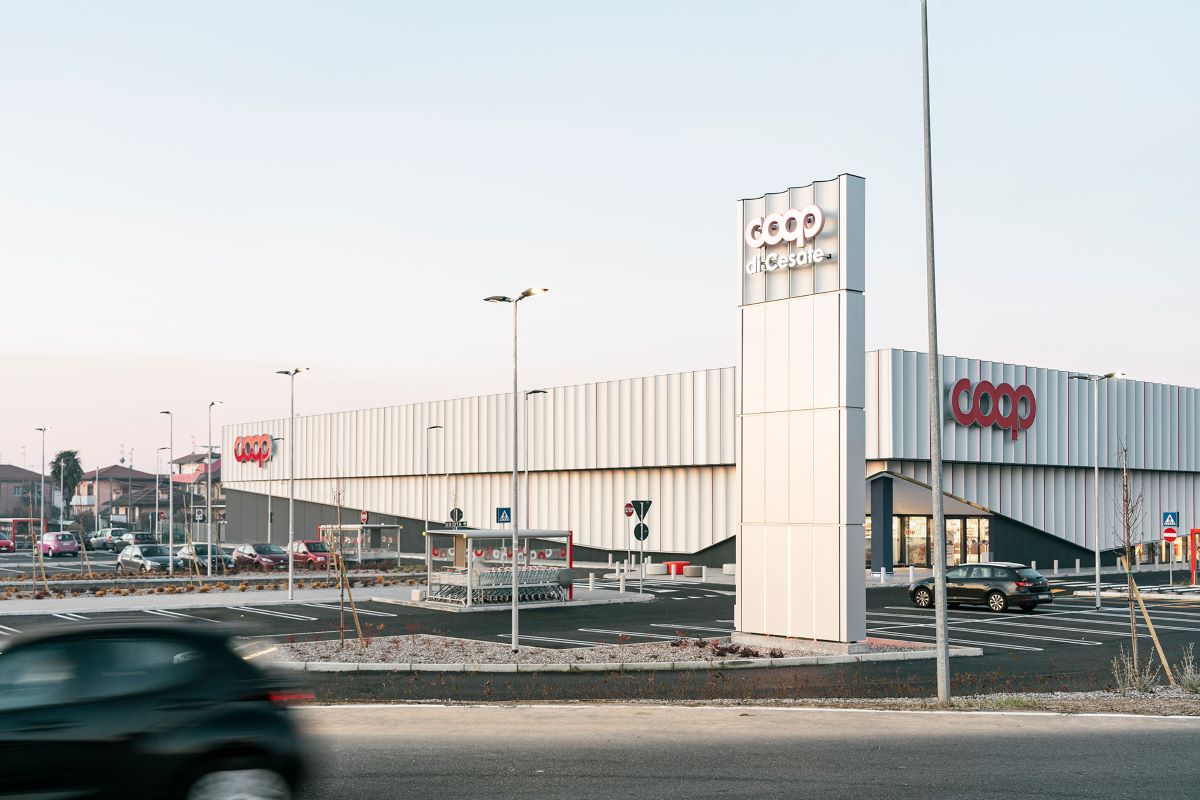Ideato dallo studio Park Associati, il progetto per la nuova Coop di Cesate si distingue per un approccio innovativo alla tipologia del retail di grande scala, focalizzandosi sull’integrazione e sull’armonizzazione con l’ambiente circostante. A cura di: Fabiana Valentini Indice degli argomenti Toggle Il concetto “Retail civico” secondo Park AssociatiDa scatola architettonica priva di profondità ad uno spazio aperto verso l’esterno Negli ultimi decenni, il modo di pensare all’architettura degli spazi per il retail ha subito una trasformazione radicale, passando da semplici luoghi di vendita a complessi centri di esperienza progettati per soddisfare i bisogni moderni dei consumatori. Quello che un tempo era una semplice disposizione di scaffali e casse è diventato un intricato labirinto di zone esperienziali che integrano tecnologia, sostenibilità e un approccio accogliente per creare un’esperienza d’acquisto più coinvolgente e rispettosa dell’ambiente. Tradizionalmente, i supermercati erano concepiti come strutture funzionali, spesso caratterizzate da un design standardizzato e poco distintivo. Le tendenze attuali indicano una crescente attenzione alla sostenibilità e alla responsabilità sociale, non solo nei prodotti offerti ma anche nell’ambiente fisico dei punti vendita. Un esempio innovativo nella progettazione di un supermercato è rappresentato dal concetto di “Retail Civico” sviluppato dallo studio Park Associati in collaborazione con Coop Lombardia. Il punto vendita si evolve e, da semplice luogo deputato all’acquisto di generi alimentari, si trasforma in un centro di contaminazione sociale e scambio di saperi per la comunità locale. Park Associati ripensa il super-mercato del brand Coop di Cesate secondo un nuovo modello funzionale e formale: “Il supermercato è un attrattore che raccoglie utenti provenienti da tutto l’intorno, costituisce quindi una sorta di eccesso di ‘capacità trasportativa’. Ripensando agli spazi aperti connessi all’edificio, abbiamo messo la densità sociale dell’utente in primo piano rispetto all’automobile.” Il concetto “Retail civico” secondo Park Associati “Elevare la percezione del supermercato fino alla lettura di un’architettura civica è un’esigenza progettuale”. La visione di Park Associati riconfigura il ruolo del supermercato all’interno della comunità. Ad una vocazione prettamente commerciale, il nuovo punto Coop di Cesate diventa un centro di incontro e partecipazione attiva dei cittadini. Attraverso l’integrazione di elementi architettonici innovativi e il rispetto dei valori del marchio, il progetto eleva l’esperienza di acquisto, promuovendo anche una maggiore coesione sociale. Il nuovo modello di supermercato proposto non è solo una risposta alle esigenze dei consumatori moderni, ma rappresenta anche un passo avanti nella progettazione di spazi commerciali responsabili e inclusivi. Da scatola architettonica priva di profondità ad uno spazio aperto verso l’esterno Il supermercato del futuro supera il concetto tradizionale di edificio inteso architettonicamente come una semplice “scatola” anonima. La Coop di Cesate si distingue per un design aperto verso la comunità e in grado di favorire il reciproco trasferimento di potenzialità tra edificio e città. Il team di progetto sottolinea con forza questo aspetto: “L’approccio progettuale alla tipologia del retail di grande scala si focalizza sull’obiettivo principale di radicare e fondere il contesto urbano con la forza commerciale che il programma necessita. Generando un reciproco trasferimento di potenzialità tra edificio e intorno urbano”. Centrale nell’approccio progettuale è stata la manipolazione del tradizionale archetipo progettuale che da sempre definisce l’aspetto degli edifici pubblici. Utilizzando materiali non effimeri e un “linguaggio compositivo e formale contemporaneo” i progettisti hanno dato vita ad uno spazio del tutto innovativo, pur mantenendo la sua funzione di luogo deputato allo shopping. La nuova “scatola architettonica” della Coop è rappresentata da una volumetria scolpita: gli angoli dell’edificio sono stati sagomati e scavati per creare entrate più accoglienti e permeabili, aumentando la connessione visiva e fisica con l’esterno. La struttura dell’edificio è stata organizzata in due livelli distinti: uno inferiore e uno superiore che si protende sopra l’ingresso principale. La disposizione enfatizza il dinamismo del supermercato, evidenziando l’effetto scolpito degli angoli dell’edificio. La visione di Park Associati conferisce al punto vendita una presenza architettonica definita e un carattere distintivo al progetto. La copertura dell’edificio vede la presenza di pannelli shed che offrono una migliore illuminazione naturale allo spazio commerciale, creando un ambiente interno confortevole e accogliente per un’esperienza di shopping ottimale. Oltre alla rivisitazione dell’architettura dell’edificio stesso, il progetto Coop Cesate si estende all’ambiente circostante. Spazi pedonali più ampi, aree verdi con vegetazione integrata, zone per incontri comunitari e giochi per bambini sono stati inclusi nel design, promuovendo la socializzazione e l’interazione all’aria aperta. Questi spazi non solo ampliano le funzioni dell’edificio, ma rafforzano anche il legame tra la struttura e la comunità locale, rendendo l’intero sito un punto focale per la vita sociale e culturale della zona. Consiglia questo progetto ai tuoi amici Commenta questo progetto