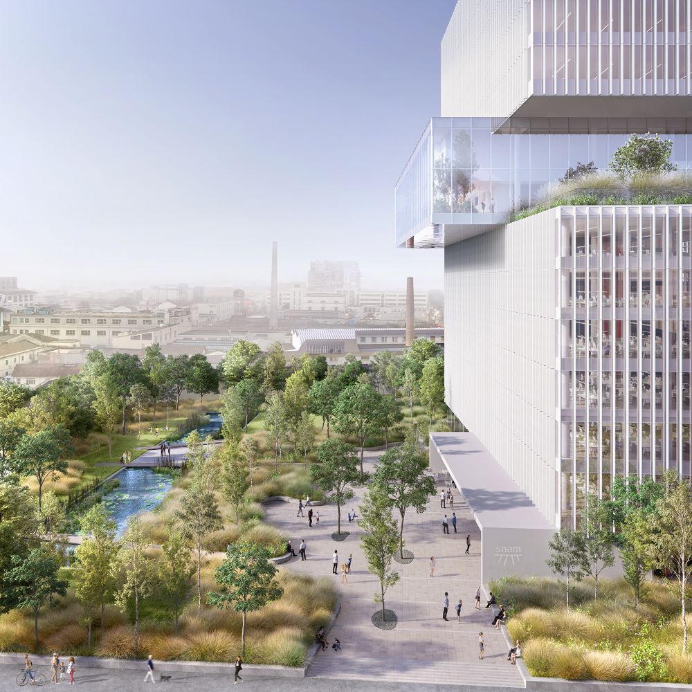 Nella zona sud di Milano sta crescendo una torre di 14 piani: sarà la nuova sede di Snam, che affiancherà quella storica di San Donato Milanese. Il progetto dello studio milanese prevede spazi di lavoro flessibili, capaci di stimolare la collaborazione e la socialità tra il personale. Prevista un’area verde di 8.500 metri quadrati, frutto della collaborazione con il paesaggista Antonio Perazzi A cura di: Pietro Mezzi Il nuovo quartier generale di Snam, un progetto che ricerca la continuità tra ambiente esterno e interno Indice degli argomenti Toggle Nuovo head quarter Snam, il progetto di PiuarchLa continuità tra interno ed esternoParlano i progettisti Snam, importante azienda italiana attiva nel trasporto, nello stoccaggio e rigassificazione del metano, apre il proprio quartier generale nel distretto Symbiosis di Covivio, nella zona sud di Milano. Il nuovo head quarter sta sorgendo tra le vie Condino e Vezza d’Oglio, in un’area oggetto di importanti interventi di rigenerazione urbana. La nuova sede, per cui la società ha firmato un accordo di compravendita con Covivio, sarà operativa alla fine di marzo del 2025 e affiancherà lo storico presidio di San Donato Milanese. La decisione di realizzare nuovi uffici a Milano è dipesa anche dalla volontà di creare uno spazio moderno, coerente con il nuovo modo di lavorare, flessibile, aperto alla socialità, con più servizi per le persone e maggiore integrazione con la comunità e il territorio. Nuovo head quarter Snam, il progetto di Piuarch Il progetto porta la firma dello studio milanese Piuarch, che ha vinto il concorso internazionale a inviti. L’edificio, che ha una superficie complessiva di circa 19mila metri quadrati, si compone di tre volumi sovrapposti e disallineati, articolati su 14 piani (due sono i piani interrati destinati a ospitare i locali tecnici e l’autorimessa). Al piano terra sono previsti l’auditorium e spazi espositivi aziendali; i piani settimo e ottavo sono invece destinati a spazi mensa e di socialità. Il tredicesimo è il piano della direzione, con una sala dedicata alle riunioni del consiglio di amministrazione. I volumi si differenziano anche per le funzioni che ospitano: ai piani terra, settimo e ottavo gli spazi sono dedicati alla socialità (mensa aziendale) e alla collaborazione; gli altri sono spazi di lavoro. Anche le diverse finiture esterne sottolineano le differenze esistenti tra i diversi volumi: gli uffici sono dotati di facciate con lamelle, mentre il volume centrale e il piano terra sono vetrati. Il progetto, come nello stile dello studio, pone attenzione ai temi della sostenibilità energetica e ambientale, all’analisi del paesaggio e all’innovazione e, nel caso specifico, si concentra sulle persone e sulle modalità di lavoro del futuro. Gli ambienti avranno aree dedicate alla collaborazione e alla creatività, con una serie di servizi che dovranno assicurare il benessere delle persone: l’ufficio non sarà solo un luogo fisico in cui lavorare, ma un contesto in cui vivere il senso di comunità. La continuità tra interno ed esterno Aspetto che caratterizza il progetto è la continuità del verde tra spazi interni ed esterni, che servirà da elemento promotore della qualità dell’aria nell’ambiente lavorativo. All’esterno sarà realizzato un parco di circa 8.500 metri quadrati, la cui progettazione è frutto della collaborazione con il paesaggista Antonio Perazzi, con un teatro di verzura, che potrà anche essere aperto ai cittadini con attività didattiche all’aperto ed eventi. L’edificio è progettato per conseguire le certificazioni Leed & Well, non inferiori a livelli Gold, poi Brave, Cened e CasaClima, sempre all’interno dei protocolli di sostenibilità del distretto Symbiosis di Covivio. Parlano i progettisti «Nel progetto per Snam abbiamo considerato una nozione ampliata di architettura – affermano i progettisti di Piuarch – che soddisfa le esigenze della società di oggi. Siamo andati oltre la scala degli ambienti artificiali convenzionali che troviamo negli spazi di lavoro, nei paesaggi e nella progettazione urbana, cercando di stabilire un dialogo sincero tra ambiente naturale, spazi funzionali e di condivisione». Dal punto di vista costruttivo, la tecnologia scelta è di tipo tradizionale, con travi e pilastri in cemento armato gettato in opera, con casseri metallici. «Impegnativi sono stati i getti dei piani settimo e ottavo, che prevedono sbalzi di notevoli dimensioni – spiega l’architetto Luca Lazzerotti di Piuarch -, realizzati con travi portanti a ginocchio e con l’uso di un’apposita carpenteria metallica. Ai piani terra, ottavo e tredicesimo sono previste delle colonne portanti, con una sezione a tronco di cono. A differenziare i volumi che compongono l’edificio sono anche le facciate esterne, che dal punto di vista tecnologico appartengono a due differenti tipologie: a montanti e traversi quelli ai piani terra, settimo e ottavo; a cellule quelle degli altri piani». Uno spazio di socialità all’aperto Piuarch È uno studio internazionale con base a Milano. Fondato nel 1996 da Francesco Fresa, Germán Fuenmayor, Gino Garbellini e Monica Tricario, è un collettivo di circa 40 tra architetti e ingegneri provenienti da diverse parti del mondo. Piuarch progetta edifici per uffici, retail, complessi residenziali, interventi di recupero per la cultura e di rigenerazione urbana. È noto a livello internazionale per la collaborazione con alcune delle maggiori maison di moda, tra cui Dolce&Gabbana, Gucci, Fendi e Givenchy. Scheda progetto Head Quarter Snam Località: Milano Committente: Snam Progetto architettonico: Piuarch Project leader: Luca Lazzerotti, Piuarch Progetto strutturale: Redesco, Sce Progetto impianti: Tekser Progetto paesaggistico: Studio Antonio Perazzi Sostenibilità: Habitech Progetto facciate: Studio di Ingegneria Rigone Direzione lavori: Artelia Italia Computi e stime economiche: GAD Global Assistance Development Im