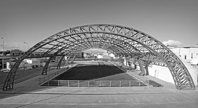 Una struttura metallica di grande valenza estetica dona lustro al tessuto urbano. Andria, città pugliese in continua espansione, sia dal punto di vista del tessuto socio-economico che urbano, nel 2017 sarà dotata di un nuovo centro sportivo polifunzionale, adibito alla pratica di cinque differenti discipline: calcio a 5, pallamano, pallavolo, pallacanestro e pattinaggio artistico. Il progetto di riqualificazione della vecchia pista di pattinaggio, impianto in stato di degrado, ha preso il via nel 2013 e ha previsto un investimento di circa 650mila euro da parte dell’Amministrazione comunale. La progettazione della nuova pista è stata affidata all’architetto Esther Tattoli, la quale si è avvalsa della professionalità dell’ingegner Michele Masciavè, calcolatore delle strutture, mentre i lavori sono stati aggiudicati alla Euro Costruzioni di Napoli. La pista piana preesistente è stata sostituita da una pavimentazione in resina epossidica, materiale idoneo alla pratica delle cinque discipline e coperta da telo in PVC in modo da poter essere utilizzata in ogni stagione. Gli spazi comuni di supporto, gli spogliatoi e le docce sono stati attrezzati per essere fruibili anche dai diversamente abili, come disposto dal CONI. L’impianto sorge in prossimità di una delle arterie principali della città, corso Italia, lungo l’asse di espansione di Andria verso Barletta. La pista è adiacente alla Chiesa di Sant’Andrea Apostolo, uno dei maggiori punti di interesse andriesi. La posizione centrale dell’impianto, unita alla prossimità di strutture religiose e scolastiche, ha fatto sì che il progetto acquisisse un’importanza strategica per la vita della città: “si è voluto dotare il centro urbano di un luogo di aggregazione giovanile, un’attrezzatura di quartiere flessibile e aperta, ma che al contempo assumesse un’importante valenza estetica e architettonica, come elemento identificante nel contesto urbano, senza entrare in competizione con le imponenti forme dei monumenti circostanti,” afferma l’architetto Tattoli. La copertura è composta infatti da grandi arcate a sesto ribassato e a sezione variabile, di circa 30 metri di luce interna, realizzate con strutture metalliche a traliccio, collegate da elementi longitudinali tubolari. L’utilizzo del metallo dei tubolari in acciaio, porta alla mente le grandi architetture di fine ‘800, che hanno caratterizzato l’Inghilterra post rivoluzione industriale. Ex pista di pattinaggio, riqualificata e adibita alla pratica di cinque differenti discipline sportive: calcio a 5, pallamano, pallavolo, pallacanestro e pattinaggio artistico. A proposito del progetto, l’architetto Esther Tattoli aggiunge: “in direzione della tribuna pre-esistente, le tre arcate principali interne si interrompono, tagliate dai pilastri in ferro, che si piegano accogliendone il carico. Lo studio dettagliato del pilastro ci ha permesso di conciliare le esigenze architettoniche con elevati livelli di prestazioni e di sicurezza, dando origine ad una struttura snella, che si integra con le forme della copertura, mediando il passaggio dalla stessa all’edificio adiacente agli spogliatoi. Il ritmo definito dall’interasse dei pilastri è infatti costruito sulle misure dell’edificio preesistente: i pilastri centrali inquadrano la copertura gradonata esistente, simmetricamente, mentre le arcate agli estremi sembrano avvolgere l’edificio, con le loro forme curve, che si accavallano alle curve dei muri dei corpi laterali.” Il sedime della pista piana esistente è stato sostituito da una pavimentazione in resina epossidica, materiale idoneo alla pratica delle cinque discipline sportive. Lo spazio è composto da grandi arcate a sesto ribassato e a sezione variabile, di circa 30 metri di luce interna, realizzate con strutture metalliche a traliccio, collegate da elementi longitudinali tubolari. E’ stata inoltre prevista una copertura in PVC, per permettere di svolgere le attività al coperto in qualsiasi stagione, pur essendo la struttura aperta. Gli spazi comuni di supporto, gli spogliatoi e le docce sono stati attrezzati per essere fruibili anche dai diversamente abili, come disposto dal CONI. Oltre a essere un progetto ideato e realizzato per essere in completa armonia con il paesaggio urbano della città di Andria, la nuova pista di pattinaggio costituisce anche un fiore all’occhiello della città dal punto di vista della eco sostenibilità: i vecchi proiettori infatti, sono stati sostituiti con supporti visivi a LED, nel totale rispetto dell’ambiente. Consiglia questo progetto ai tuoi amici Commenta questo progetto