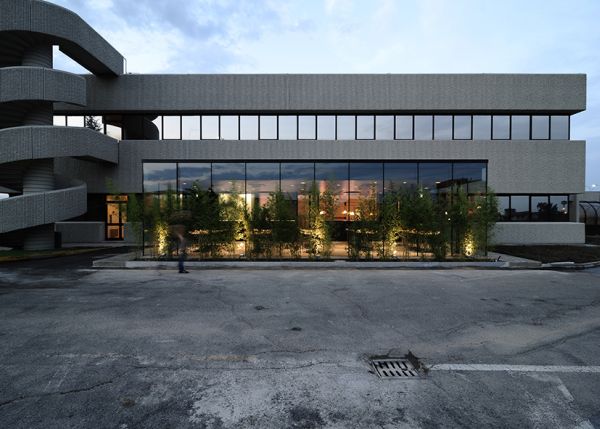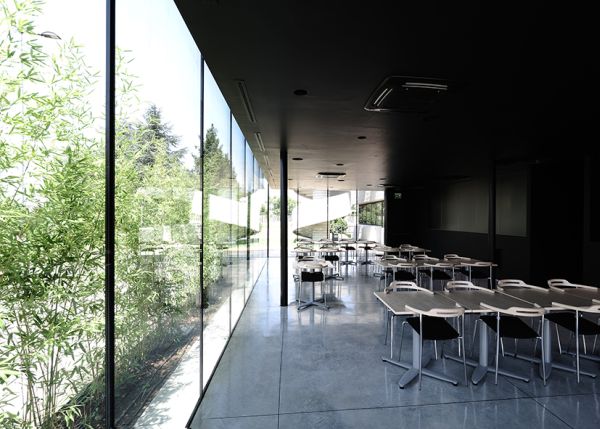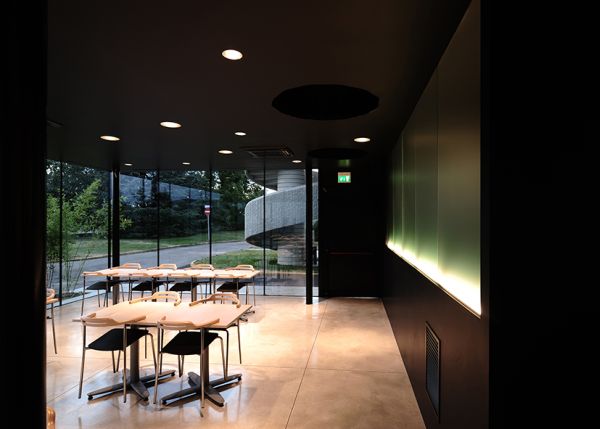 Il progetto nasce dalla necessità di ampliare gli spazi dedicati alla ristorazione dei dipendenti della sede centrale di Volvo Trucks Italia, da qui l’idea di cogliere l’opportunità per generare un nuovo luogo per pranzi, cene e ricevimenti che fosse complementare a quelli esistenti, ma che apportasse un incremento qualitativo oltre che quantitativo. L’edificio direzionale esistente è collocato in un’importante area industriale in provincia di Bergamo ed insiste in un ampio lotto confinante sul lato d’ingresso con la strada statale, su altri due lati con altri edifici industriali e sul lato prospicente all’area d’intervento, con un lotto attualmente a destinazione agricola di proprietà della stessa azienda, uno degli ultimi lotti non edificati della zona. Il centro direzionale si sviluppa su due livelli e si presenta come un volume semplice e compatto, caratterizzato da facciate in cemento a vista dalla superficie particolarmente ruvida, regolarmente interrotte da finestre a nastro dalla superficie riflettente. A seguito dell’aumento di personale, il locale di ristorazione risultava insufficiente alle esigenze aziendali, pertanto l’intervento richiedeva un aumento di superficie, risolto addossando alla struttura esistente il nuovo volume. Al preesistente edificio in calcestruzzo a vista, è stato annesso il nuovo ristorante aziendale, che si configura come un parallelepipedo completamente vetrato, che consente la massima apertura visiva sull’attiguo appezzamento agricolo, instaurando così un rapporto di continuità tra spazio interno ed esterno. La luce naturale, materia dello spazio progettato, viene modulata attraverso una schermatura solare naturale, composta da una cortina di bamboo che proietta un vibrante e mutevole gioco di ombre all’interno del ristorante, garantendo tuttavia la permeabilità visiva verso l’esterno. L’arredamento è semplice: al nero di tutta la struttura si contrappone il calore del legno chiaro di tavoli e sedie, appositamente orientate per permettere ai fruitori di godere del panorama esterno. Alla sera, la sobria illuminazione interna integrata a soffitto, trasmette all’esterno una piacevole sensazione di calore e accoglienza, pur consentendo la privacy dei commensali grazie al filtro di verde posto lungo la grande vetrata principale. Una struttura essenziale volta ad astrarre tempo e spazio, in perfetta assonanza con la consolidata filosofia aziendale. Consiglia questo progetto ai tuoi amici Commenta questo progetto