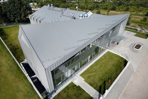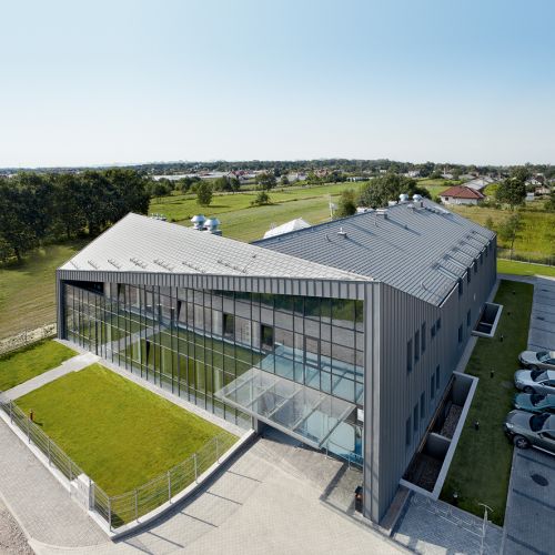 Coperture e pareti di un centro medico rivestite con alluminio Prefa Lo studio di architettura A5 Architekc e PREFA si sono incontrati nel 2010 e a distanza di soli 3 anni hanno già dato vita al primo progetto nato da questo connubio: il centro ortopedico Osteon di Jablonna vicino a Varsavia (Polonia), una struttura di eccellenza sia per le terapie micro-invasive ed esami diagnostici all’avanguardia che per l’elevatissima specializzazione del personale. Quando nel 2011 lo studio A5 Architekci ha iniziato ad elaborare il progetto per la costruzione della clinica ortopedica Osteon, non ha avuto esitazioni nella scelta dei prodotti PREFA per il rivestimento delle facciate e della copertura. L’obiettivo architettonico era la creazione di una struttura funzionale e moderna dall’aspetto non convenzionale senza prescindere da una qualità elevata dei materiali. Il centro di ortopedia è situato nel cuore della Legionowsi e collocato nelle vicinanze di abitazioni residenziali, dalle caratteristiche coperture in ceramica. Con la sua copertura e le facciate in alluminio, l’edificio della clinica ha una connotazione forte rispetto agli altri edifici ma al tempo stesso si inserisce armoniosamente nell’ambiente circostante, grazie alla forma classica del tetto. Khrystyna Hodlevska dello studio A5 Architekci commenta: “La committenza aveva espresso l’esigenza di realizzare l’edificio con una forma semplice ma al contempo caratterizzante. I prodotti PREFA si distinguono per l’estrema modellabilità dei propri elementi e questa caratteristica è stata consapevolmente messa a frutto. Un collegamento particolare di forme semplici degli elementi della copertura donano al tetto un effetto geometrico interessante e originale. La struttura della nuova clinica spezza la linea tradizionale delle strutture sanitarie polacche. Le imbotti delle finestre sono direttamente inserite nella struttura del tetto e della facciata. Data la lunghezza non comune dei singoli elementi della facciata che arrivano fino a 13 m, molta cura è stata dedicata alle fasi di trasporto e alla posa in opera affinché avvenisse in modo sicuro e preciso. La difficoltà maggiore riscontrata nella realizzazione del tetto è stata la ricerca della corrispondenza dei moduli rispetto ai pannelli della facciata. Su richiesta dell’architetto il nastro aggraffato andava posato sul prolungamento della spalletta e direttamente al centro delle finestre. I restanti pannelli andavano posati in modo tale da nascondere le loro differenze in larghezza e ridurre il più possibile gli scarti di materiale. L’alluminio in combinazione all’impiego del vetro come rivestimento della facciata frontale dona all’edificio una connotazione estremamente lineare e moderna. I prodotti PREFA si distinguono non solo per il loro valore estetico, ma offrono una serie di vantaggi ulteriori. L’alluminio per sua natura non arrugginisce, non è soggetto a rottura ed è molto duttile, quindi facile da lavorare anche in condizioni climatiche difficili. Quest’ultima caratteristica è stata enormemente apprezzata nella fase di applicazione degli elementi PREFALZ e SCAGLIA utilizzati per il rivestimento del progetto Jablonna la cui posa in opera ha avuto luogo in inverno a temperature molto basse. Donata Lazarczyk, Coordinatore Vendita & Marketing presso PREFA Polonia, afferma: “Il nostro nastro in alluminio PREFALZ è molto più morbido nella lavorazione rispetto alla maggior parte dei nastri in aggraffato alternativi, per cui più facile da lavorare – anche nel caso di temperature molto basse. La superficie dei nostri prodotti è altrettanto flessibile e malleabile e grazie alle innovazioni tecnologiche messe a punto da PREFA è anche resistente alle temperature e intemperie. Non meraviglia il fatto che PREFA offre 40 anni di garanzia su propri prodotti.” Lazarczyk fa notare un ulteriore vantaggio: “Nel caso di basse temperature, una posa così veloce e semplice è per i nostri installatori un grosso vantaggio. L’alluminio è più leggero rispetto ad altri materiali, inoltre i singoli elementi vengono posati senza fissaggi esterni.” Il peso di soli 2,5 kg/mq del sistema PREFA è davvero ridotto rispetto a quello di un tetto tradizionale (ca. 35-55 kg/mq). Rivestimento in alluminio per un centro medico 2 Vista dall’alto della clinica Altra vista della clinica Particolare del rivestimento in alluminio Consiglia questo progetto ai tuoi amici Commenta questo progetto