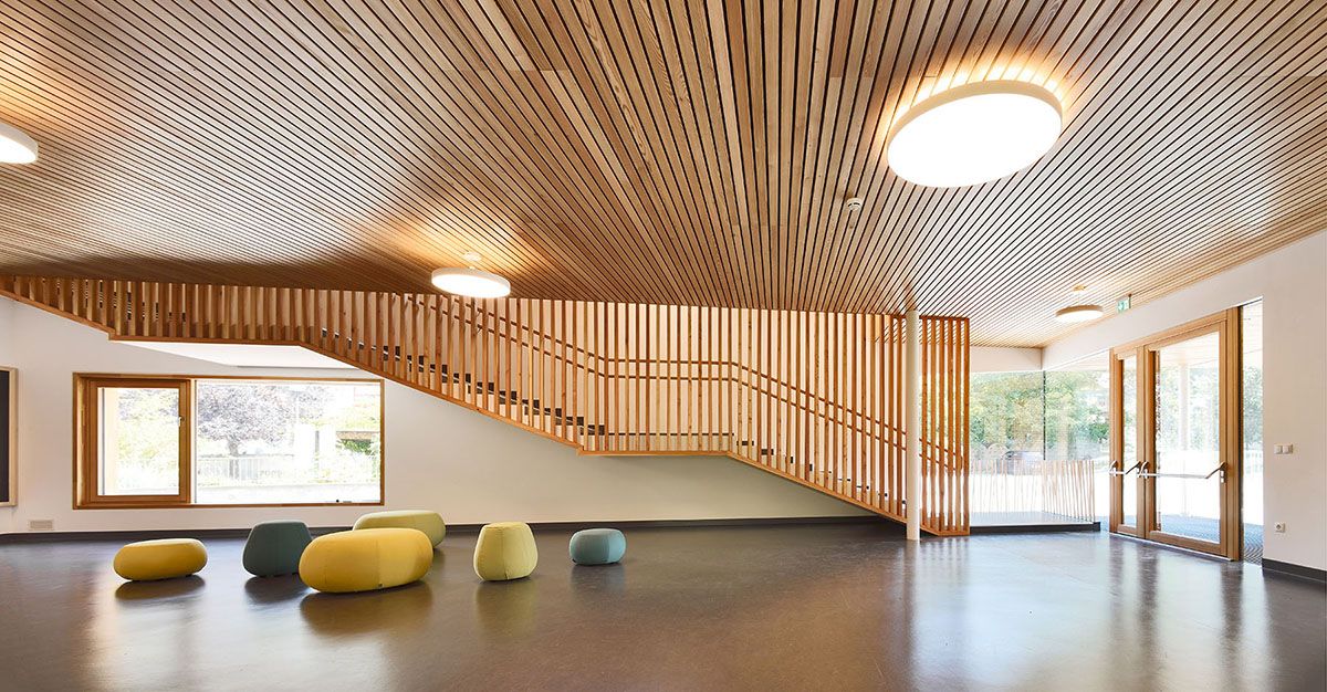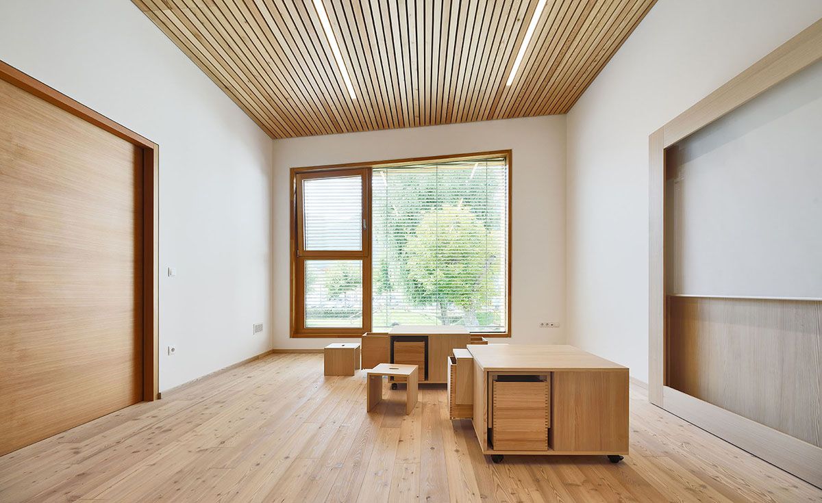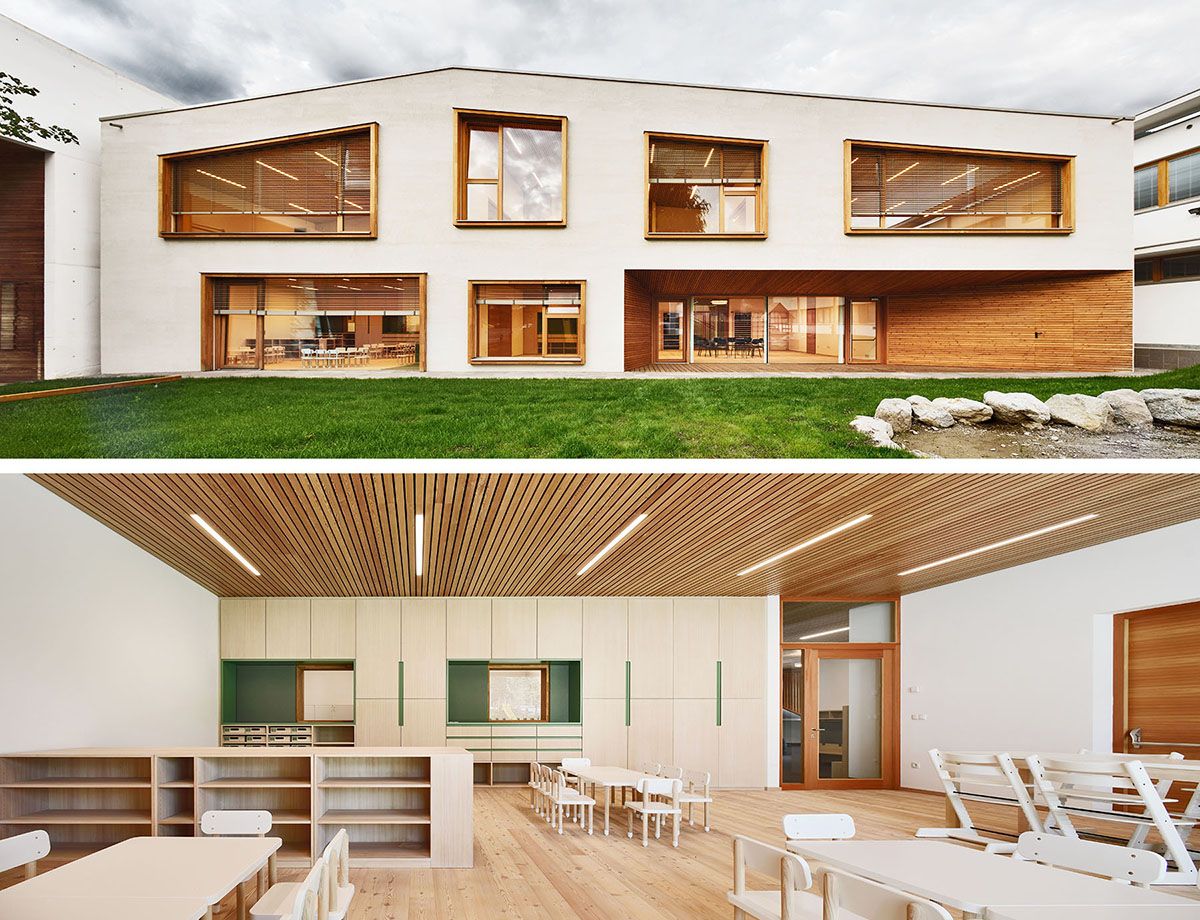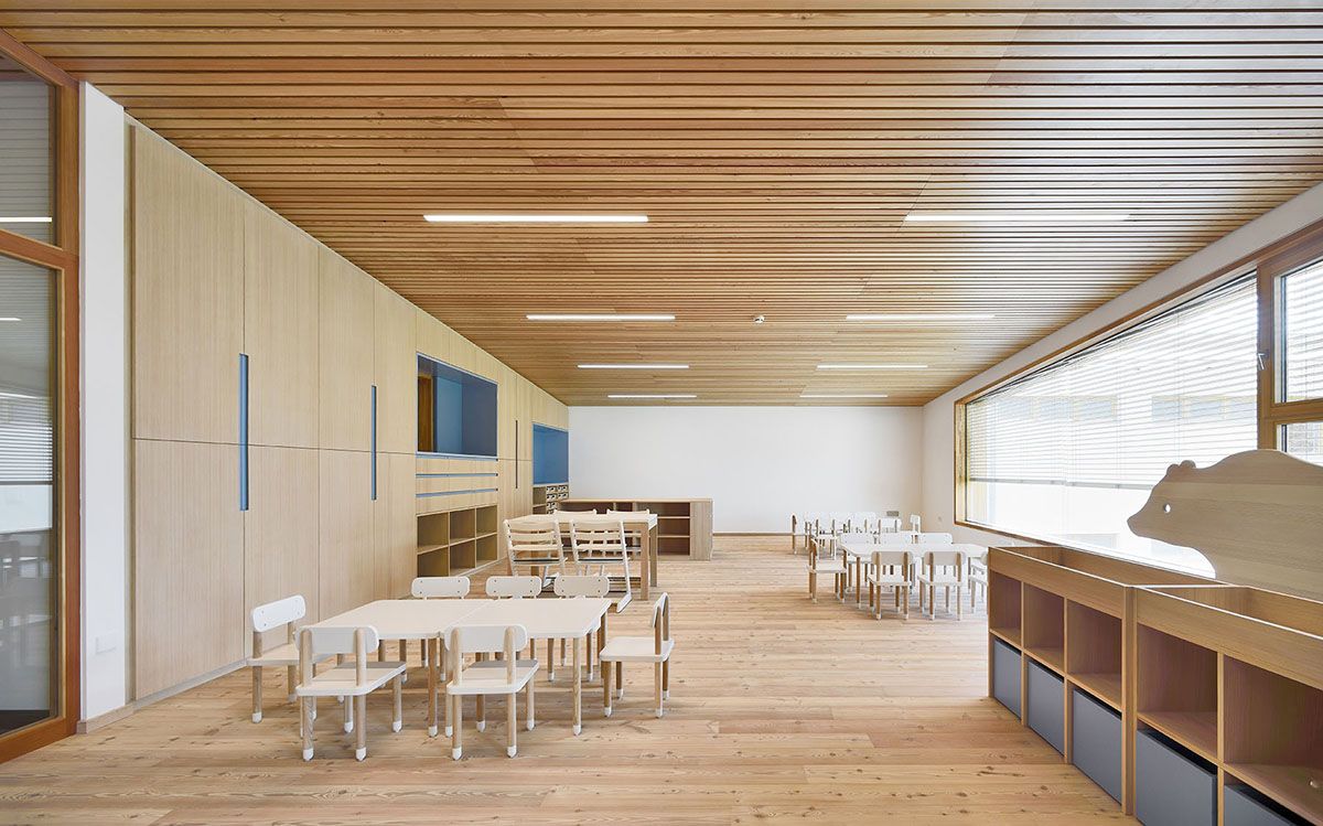 A Sluderno (Bolzano), Roland Baldi realizza una scuola in legno che unisce la sostenibilità con l’educazione, in un connubio elegante e discreto, mai banale. Il progetto ha vinto il Wood Architecture Prize 2023, nella categoria “Architettura pubblica” A cura di: Arch. Emanuele Meloni Indice degli argomenti Toggle Wood Architecture Prize by KlimahouseConcept e ideaSpazi a misura di bambinoLegno e sostenibilità Sorge a Sluderno, un piccolo comune nell’estremo nord Italia della Provincia autonoma di Bolzano in Trentino-Alto Adige, la scuola materna attenta alla sostenibilità e dedita all’educazione a misura di bambino, opera di Roland Baldi Architects. Frutto di un concorso di architettura risalente al 2012, è stata ultimata nel 2018. Vincitrice del Wood Architecture Prize 2023 assegnato a Klimahouse, risultata tra i migliori progetti in legno Klimahouse, prima nella categoria “Architettura pubblica”. Gli fanno compagnia il progetto Casa 4 firmato dall’Architetto Luca Compri di LCA Architetti (vincitore nella categoria “Architettura privata”) e l’Hotel La Briosa degli architetti altoatesini Felix Perasso e Daniele Tolpeit (vincitore nella categoria “Architettura sperimentale”). La giuria vanta personalità di spicco del panorama accademico e scientifico: presieduta dall’Architetto Sandy Attia dello Studio Modus Architects era composta dal Prof. Guido Callegari del Politecnico di Torino, dall’Arch. Mauro Frate dello Studio MFA Architects e già docente a contratto Iuav, dal Prof. Roberto Gargiani dell’EPFL Ecole Polytechnique di Losanna, dall’Arch. Manuel Benedikter, dal Prof. Paolo Simeone del Politecnico di Torino e da Luca Gibello, Direttore de Il Giornale dell’Architettura. “Il legno – ha spiegato la giuria – svolge funzione strutturale nelle pareti in CLT disegnando gli spazi interni principali spesso senza soluzione di continuità tra serramenti e controsoffitti”. Wood Architecture Prize by Klimahouse La prima edizione del premio nazionale dedicato all’architettura in legno, Wood Architecture Prize by Klimahouse, istituito da Fiera Bolzano in collaborazione con il Politecnico di Torino e lo Iuav di Venezia, ha visto primeggiare nella categoria “Architettura pubblica”, tra le migliori architetture in legno, il progetto di Roland Baldi Architects per la scuola materna di Sluderno, Paese della provincia autonoma di Bolzano. Il Wood Architecture Prize, il primo premio a livello nazionale per l’architettura in legno, intende promuovere la conoscenza delle diverse possibili interpretazioni del costruire in legno attraverso la selezione di opere, in grado di rappresentare i diversi contesti applicativi e di sperimentazione: nuove costruzioni, interventi di riqualificazione, sostituzione e ricostruzione, opere sperimentali. L’industria delle costruzioni è responsabile di oltre un terzo di tutti i rifiuti prodotti in Europa e di circa il 40% delle emissioni di Co2 secondo il report della Global Alliance for Buildings and Construction. Di conseguenza, ha allo stesso tempo il potenziale per contribuire in modo sostanziale al risparmio delle emissioni e alla rigenerazione delle risorse. Il dibattito europeo ha individuato da tempo nel legno una risorsa strategica per trasformare il settore edile in un modello di economia circolare in grado di contrastare anche la crisi climatica. I 3 progetti premiati (arch. Privata/pubblica/sperimentale), sui 64 in gara, sono realizzazioni concrete e testimoni di come la sostenibilità, l’efficienza e il design possono convivere in armonia, tracciando la strada da seguire in linea con gli obiettivi comunitari per un impatto climatico zero entro il 2050. Caratterizzata da linee chiare ed elementi riconoscibili, che dialogano d’intesa con il contesto, grazie anche all’utilizzo del legno, la scuola interpreta pienamente i valori di sostenibilità ambientale, economica e sociale. Questo progetto è stato scelto per l’equilibrio spaziale e la raffinatezza formale nella definizione di un ambiente a misura di bambino, dove continue variazioni di scala alimentano un’esperienza percettiva ricca e coinvolgente. Il sistema delle bucature, la loro collocazione e misura, connota una stereometria immaginata in relazione di continuità con il tessuto edilizio circostante a dichiararne la funzione pubblica di uso collettivo. Il legno svolge funzione strutturale nelle pareti in CLT disegnando gli spazi interni principali spesso senza soluzione di continuità tra serramenti e controsoffitti. Concept e idea Il comune di Schluderns, situato in una valle d’Alto Adige che collega Italia, Austria e Svizzera, è un territorio dove cure del paesaggio e sviluppo sostenibile si intrecciano con un’alta qualità della vita e una particolare attenzione verso l’architettura. Il progetto è il risultato di un concorso di architettura vinto nel 2011. Il compito era quello di realizzare una scuola materna con tre sezioni e i relativi spazi funzionali. La nuova scuola si colloca fra gli edifici esistenti in modo da completare il tessuto urbano del piccolo centro cittadino. L’accesso avviene da una piazzetta pubblica che si inserisce all’interno di una più ampia area pedonale. Già nelle prime fasi del progetto, è stato dato grande valore alla creazione di un edificio dalle linee chiare e dagli elementi riconoscibili che si armonizzasse con il contesto. L’idea alla base era quella di dare all’architettura la forma iconografica di una casa per creare un ambiente amichevole e familiare per i bambini. Spazi a misura di bambino Con la Scuola materna di Sluderno, Roland Baldi Architects ha realizzato una costruzione in legno, sostenibile e a misura di bambino. Il tetto a falde, la facciata intonacata e le grandi finestre, sfalsate fra di loro, ricordano il disegno di un bambino riportato alle dimensioni reali. L’edificio si articola su due livelli. Il piano terra è dedicato alle attività più collettive e di aggrega