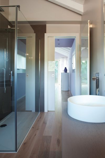 L’intervento riguarda una costruzione immersa nella suggestiva cornice paesaggistica collinare dei vigneti veneti a ridosso dell’azienda vinicola di proprietà della famiglia Bernardi. Il corpo edilizio sul quale si è intervenuti era costituito da una vecchia legnaia risalente agli anni Trenta. L’aggregato rurale è stato completamente recuperato mantenendo le caratteristiche originarie grazie ad un processo di demolizione e ricostruzione che ha richiesto circa quindici mesi di lavoro. La nuova abitazione doveva dunque avere l’impronta di uno stabile rustico che sapesse mantenere vivo lo spirito originario dell’architettura locale senza perdere le radici con la storia, dandone però una rinnovata identità architettonica. Nella realizzazione delle opere di disposizione e finitura interna, illuminazione e arredamento della casa si è cercato di dare la priorità alle esigenze e ai gusti del committente, tenendo però sempre ben presente che l’edificio presentava un volume già ben definito. L’idea era di dar vita ad un ambiente luminoso, aereo, spazioso, che contemporaneamente risultasse caldo e accogliente pur avendo l’impronta spiccatamente moderna e di tendenza dell’open space. L’effetto desiderato si è ottenuto giocando con la luce e col colore. Le tinte morbide ed eleganti degli arredi hanno definito gli spazi in profondità e in altezza ed esaltato la luce naturale che pervade gli ambienti entrando dalle grandi vetrate, dalle quali si ha una splendida vista dei giardini e dei vigneti che circondano l’abitazione. In più, il legno chiaro dei pavimenti e l’accostamento di pezzi in stile antico ad un contesto di arredamento prettamente moderno hanno dato un’impronta particolare a tutto l’ambiente. Nella suddivisione degli spazi, è stato indispensabile l’utilizzo del sistema per porte a scomparsa a due ante parallele Telescopica Estensione di Eclisse, che ha permesso di chiudere completamente alcuni volumi della zona living o di lasciarli completamente a vista per permettere di mantenere l’interazione tra zona cottura, zona pranzo e area relax. Al piano superiore, dedicato alla zona notte e wellness, i sistemi per porte a scomparsa Unico di Eclisse hanno consentito di sfruttare in maniera ottimale gli spazi e nel contempo di rendere più agevoli i movimenti all’interno degli stessi. Caratteristiche abitazione: serramenti a taglio termico a doppia camera cappotto spessore 15 cm in polistirolo a grafite coibentazione del tetto con 18 cm di fibra di legno/polistirene impianto solare termico impianto di riscaldamento a pavimento Prodotti Eclisse: controtelaio mod. Telescopica Estensione (sala da pranzo), controtelaio mod. Unico (zona notte). Suggestiva trasformazione di una vecchia legnaia 2 Suggestiva trasformazione di una vecchia legnaia 3 Suggestiva trasformazione di una vecchia legnaia 4 Suggestiva trasformazione di una vecchia legnaia 5 Consiglia questo progetto ai tuoi amici Commenta questo progetto