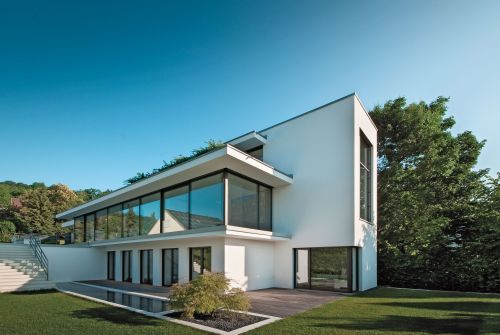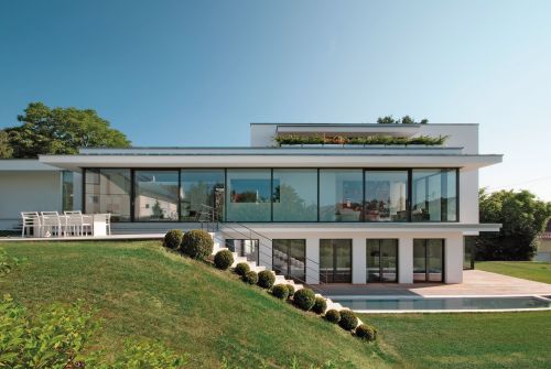 Il progetto qui presentato tratta della realizzazione di Villa Mauthe un edificio a tutta trasparenza, vicino a Stoccarda, a cura dello studio di architettura Philipp Architekten. In Germania, su di una proprietà ai piedi del Giura Svevo, sviluppata principalmente nel senso della lunghezza e con una parte in pendenza, il committente voleva far costruire un edificio che fosse adatto alla vita familiare, e che riflettesse inoltre la passione per arte e design coltivata anche tramite la propria attività di editore. La casa infine doveva rispecchiare lo spirito creativo dell’intera famiglia. Il terreno dai confini estremamente irregolari è stato frazionato mediante il disegno di tre assi: una “linea degli alberi”, tracciata sul limitare della vegetazione, una “linea dell’acqua”, il cui tratto corrisponde ai contorni di una vasca in giardino, sul terreno, e una “linea dell’arte”, che dà forma all’intera costruzione. L’andamento della “linea dell’arte” suddivide l’edificio in uno spazio orizzontale, proiettato verso l’esterno, che comprende le stanze comuni a tutta la famiglia, come il soggiorno, la sala da pranzo e la cucina, e uno spazio verticale dove si trovano stanze riservate a momenti più privati, dove è possibile isolarsi, come la biblioteca o lo studio. Dall’ingresso al piano terra si entra nell’edificio seguendo le forme di un lungo lucernario FINSTRAL che attraversa quasi l’intera casa, concretizzando il disegno dell’asse che separa lo spazio verticale da quello orizzontale. L’adiacente biblioteca si sviluppa su due livelli; una scala conduce da qui allo studio della famiglia al piano superiore, e al piano inferiore, a livello del giardino, nelle camere dei genitori e dei bambini. Dal momento che l’arte, intesa anche come attenzione al bello, è il tema ispiratore del progetto, tecnici e committenti hanno voluto riservare inoltre particolare attenzione a fattori come l’illuminazione, valorizzando la luce naturale grazie alle ampie superfici vetrate e l’effetto della luce artificiale grazie ad un sapiente studio di lighting design. I serramenti: spazi più luminosi da vivere, il cui fascino viene messo in risalto dalle grandi aperture su pareti e soffitto: la scelta del progettista è ricaduta sulle linee eleganti e slanciate dei serramenti in alluminio FINSTRAL FIN-Project. Il valore del prodotto, la qualità di materiali e tecniche realizzative e l’armonia di forme strumentali all’ispirazione della più moderna architettura sono i fattori che hanno contribuito ad orientare la decisione dello studio Philipp Architekten (www.philipp-architekten.de) verso FINSTRAL. Nell’esecuzione della facciata è stata studiata poi una particolare modalità di installazione del frangisole FINSTRAL sotto l’intonaco, in modo che l’effetto d’insieme non venisse pregiudicato dalle sagome dei cassonetti sopra le finestre. Per una maggiore leggerezza. Caratteristiche tecniche di Fin-Project Le finestre in alluminio FIN-Project si caratterizzano per le eccellenti proprietà di isolamento termico. I profili interni in PVC pluricamera, dotati di guarnizione mediana, i distanziali vetro termicamente ottimizzati e i tripli vetri consentono di raggiungere un Uw pari a 0,78 W/m²K. I serramenti FIN-Project sono costituiti da un corpo centrale in PVC isolante a cui vengono agganciati su entrambi i lati i profili di rivestimento in alluminio. Sin dalle versioni base i valori d’isolamento acustico sono pari a Rw 38 dB, con speciali vetri pesanti ed elastici si tocca Rw 44 dB. Il vetro è incollato al telaio dell’anta lungo tutto il suo perimetro, riducendone al minimo l’ingombro e incrementando l’isolamento termico e le proprietà antieffrazione. Il telaio può essere predisposto – grazie all’applicazione dello speciale controtelaio isolato FINSTRAL – per scomparire completamente all’interno della muratura, realizzando una mazzetta ad hoc per ridurre il più possibile il ponte termico tra interno ad esterno. Consiglia questo progetto ai tuoi amici Commenta questo progetto