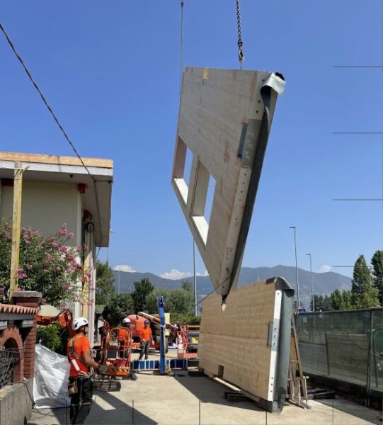 A cura di: Raffaella Capritti Indice degli argomenti: I vantaggi dell’edilizia off-site Il cantiere di Corte Franca Gli edifici sono responsabili del 40% delle emissioni e la loro riqualificazione è tra i fondamenti del processo ambizioso del Green New Deal per la transizione energetica e la neutralità climatica in Europa. Ricordiamo inoltre la strategia Renovation Wave che prevede la possibile riqualificazione di 35 milioni di edifici entro il 2030, stimolando fino a 160.000 nuovi posti di lavoro verdi nel settore delle costruzioni. In Italia, se vogliamo rispettare i target previsti, dobbiamo accelerare la decarbonizzazione degli immobili e pianificare rigorosi interventi annuali in tutte le città. Anche se 9 città italiane hanno deciso di anticipare gli obiettivi di decarbonizzazione diventando Smart Cities a impatto zero entro il 2030, siamo molto lontani dal rispettare la traiettoria. “Nonostante i molti incentivi, spiega Edoardo Zanchini direttore dell’ufficio speciale per il clima del Comune di Roma, manca una politica che individui il numero di interventi annui da realizzare nelle regioni e nelle città. Bisogna scegliere alcuni cantieri dell’innovazione, che siano di esempio, a partire dai condomini e dalle scuole, dove raggiungere ambizione e innovazione. Le soluzioni devono essere poi facilmente replicabili”. Il progetto Energiesprong – rappresentato in Italia da Edera – segna un importante passo in questa direzione. Applicato da tempo con successo in alcuni paesi soprattutto del Nord Europa, a partire dall’Olanda dove è nato, è finalmente stato presentato anche in Italia, a Corte Franca (BS), il primo cantiere che vede la collaborazione di alcune fra le più importanti aziende del settore edilizio, quali Wood Beton, Rockwool, Innova e Caparol, che condividono il comune obiettivo di innovare e spingere per la riqualificazione e industrializzazione del mercato edilizio, abbattendo i fabbisogni energetici e migliorando la qualità degli edifici. Si tratta di un importante percorso di innovazione coordinato da Edera (società no profit nata per accelerare la rigenerazione e la decarbonizzazione dell’ambiente costruito su larga scala), cui hanno aderito 22 imprese impegnate nella realizzazione di prodotti industrializzati. Un processo di industrializzazione dell’edilizia particolarmente interessante nel nostro paese caratterizzato da un patrimonio edilizio molto obsoleto ed energivoro, moltissimi condomini costruiti nel secondo dopoguerra, una burocrazia farraginosa e con la necessità di pensare a uno scenario di riqualificazione, anche sismico, post Superbonus 110%. Un cambiamento significativo, ma necessario, del processo edilizio che va pensato su più dimensioni: ambientale, energetico, antisismico e di riqualificazione del patrimonio immobiliare. Per capire che si deve guardare oltre il superbonus, Marco Marcatili di Nomisma ci dice che “con il superbonus sono stati inseriti 35 miliardi, ma si arriverà a 50. Guardando la produttività abbiamo riqualificato 150.000 edifici su 12 milioni, ovvero lo 0,5% del patrimonio. Alla produttività attuale impiegheremmo 120 anni continuando a finanziare quelle risorse”. In poche parole manca un 95,5% di parco immobiliare da riqualificare e si devono trovare soluzioni efficienti e sostenibili. I vantaggi dell’edilizia off-site Si tratta di un progetto in qualche modo rivoluzionario che ha l’obiettivo di avviare una riqualificazione profonda net 0 energy degli edifici grazie a sistemi di edilizia prefabbricata off site. Le facciate vengono realizzate in fabbrica con pannelli che possono essere composti da vari materiali a seconda delle necessità, e le operazioni in cantiere sono rapite e per nulla invasive. Ciò comporta molti vantaggi sia per l’ambiente che per il comfort degli abitanti, che durante i lavori possono continuare a vivere nel proprio appartamento. Va poi sottolineata la sicurezza degli operatori in cantiere, la velocità e la qualità degli interventi e l’aspetto della circolarità: tutto ciò che sta fuori terra può essere disassemblato e non si producono scarti in cantiere. Infine, a livello di costi, fare retrofit off site su larga scala è assolutamente competitivo con i sistemi tradizionali, i costi dei lavori si ripagano grazie ai risparmi sulle bollette energetiche e sulle manutenzioni. Thomas Miorin Fondatore e Amministratore Delegato dell’impresa sociale EDERA, sottolinea che “l’obiettivo è rendere possibile la riqualificazione massiva del patrimonio abitativo con tempi e costi contenuti, contrastando la povertà energetica e il cambiamento climatico. Selezioniamo i prossimi interventi a partire dalle periferie urbane”. Il cantiere di Corte Franca Il condominio residenziale di Corte Franca formato da 5 unità immobiliari e realizzato negli anni 70 è il primo progetto concluso a seguito dell’ingresso di Wood Beton nel programma Energiesprong ed è stato scelto per le problematiche che presentava, che si incontrano in diverse tipologie di edifici: pessime prestazioni energetiche, una struttura non antisismica, riscaldamento e acqua garantiti con caldaie murali a gas metano, basso comfort abitativo, dispersioni termiche ed energetiche e bollette elevate. Un edificio che necessitava, spiega Giovannoi Spatti Direttore tecnico Wood Beton, dei 3 tipi di adeguamento che la tecnologia Energiesprong permette di realizzare: energetico, sismico e impiantistico. Il processo ha previsto precisi passaggi, dall’analisi documentale ai rilievi in 3D, seguiti dalla progettazione BIM e dal preassemblaggio dei componenti, per concludersi con i lavori in cantiere. Il progetto ha previsto la realizzazione di nuove facciate e copertura con pannelli prefabbricati con struttura in legno, con una nuova fondazione perimetrale esterna. Marco Dal Mas, CTO di Edera/ Energiesprong Italia era presente in cantiere e ci ha mostrato praticamente in diretta quanto sia rapida e del tutto sicura per 