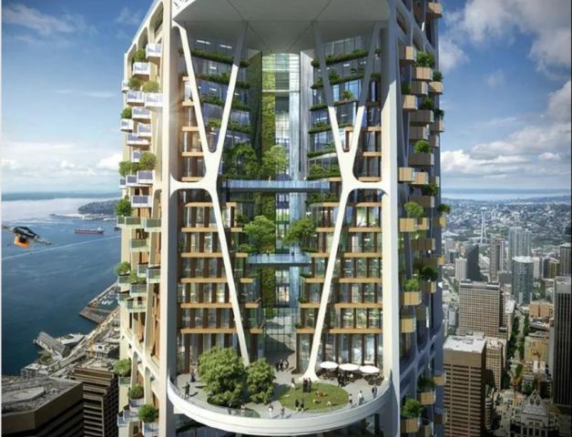 Seattle 2030 è un concept di grattacielo iconico e futuristico, alto 400 metri, incentrato sul benessere psico-fisico dei residenti, che si propone di ridefinire la vita dopo la pandemia. Un modello architettonico basato su un ambiente biofilo, che migliora le condizioni di vita e contrasta i cambiamenti climatici grazie a energie rinnovabili e tanto verde. a cura di Pieralberto Greco Indice degli argomenti: Struttura esagonale e blocchi sovrapposti Una nuova leadership contro i cambiamenti climatici Come saranno i modelli architettonici tra dieci anni? La pandemia causata dal Covid-19 potrebbe contribuire a ripensare il design dei grattacieli del futuro? Per cercare di rispondere a questa domanda, gli architetti Ro Shroff e Shaina Yang dello studio di architettura 3MIX hanno proposto “Seattle 2030“, un concept di grattacielo che ridefinisce i canoni tradizionali di vita, lavoro e tempo libero, provando a concentrarli in un unico grattacielo dal design insolito, futuristico, basato sul concetto di ambiente biofilo, dove tutta l’attenzione è sulle forme di vita e su tutto ciò che le ricorda. Struttura esagonale e blocchi sovrapposti Seattle 2030 ricorda la struttura di un obelisco. Visto in sezione, il grattacielo rivela una struttura interna costituita da tre blocchi racchiusi in una configurazione esagonale. Visto di profilo, il grattacielo è composto da otto super blocchi sovrapposti, che insieme raggiungono 150 mila metri quadrati di superficie con destinazioni diverse: spazi di lavoro, shopping, residenziale, tempo libero e spazi verdi. Ogni tipologia di destinazione d’uso è stata pensata per assicurare una minore densità abitativa in favore di una qualità della vita più alta e un migliore benessere psico-fisico. Ogni blocco della struttura garantisce una connessione diretta con giardini verticali, cascate, ponti sospesi, rampe per biciclette, porti per droni e spazi per animali domestici. La struttura portante del grattacielo è ibrida, ed è basata su un esoscheletro in acciaio con anime in calcestruzzo per supportare al meglio i carichi laterali e di gravità. Appena sotto l’esoscheletro, la facciata di Seattle 2030 incorpora pannelli di legno operabili che, oltre a donare un’estetica calda a tutto l’edificio, favoriscono la ventilazione naturale. Con questa soluzione il 90% della torre è costituita da legno massiccio, che cattura il carbonio e facilita l’ambiente biofilo. La presenza di giardini nascosti in ogni fessura tra i blocchi principali del grattacielo, contribuisce alla creazione di un profilo iconico, riconoscibile e allo stesso tempo aiutano ad eliminare i vortici di vento. Ogni blocco sovrapposto è alto 50 metri e ciascun è separato dall’altro grazie ad uno spesso pavimento. Uno smorzatore di massa a pendolo sospeso contrasta le forze laterali sulla torre più leggera. Completano il progetto un “cloud walk” sospeso a più di 350 metri d’altezza, un ponte di osservazione, uno “sky port” e una generosa turbina eolica sul tetto. Una nuova leadership contro i cambiamenti climatici L’iconico Seattle 2030, con una predominanza di legno massello spera di definire un nuovo paradigma per i grattacieli. L’intero progetto è pensato per migliorare la salute e il benessere di residenti ed ospiti. È un grattacielo “aperto” che supera la concezione di edificio ermeticamente chiuso. Più in generale, Seattle 2030 ha lo scopo di incoraggiare una leadership di pensiero più forte e una determinazione politica per garantire il controllo delle malattie e combattere il cambiamento climatico attraverso una nuova generazione di grattacieli biofili a livello globale. img by Studio 3Mix Consiglia questa notizia ai tuoi amici Commenta questa notizia