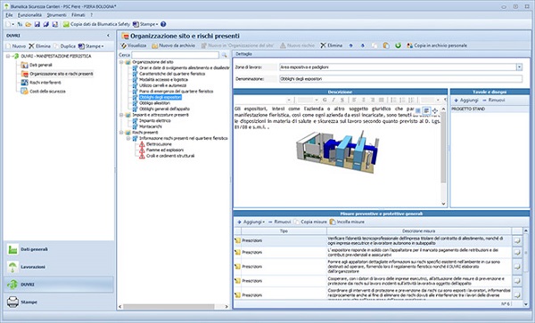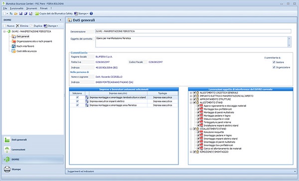 Il D.U.V.R.I. specifico per ogni manifestazione (richiesto dal Capo II Manifestazioni Fieristiche) è già preimpostato, con coordinamento delle lavorazioni interferenti ed allineato con i contenuti dell’Allegato V del Decreto Interministeriale 22 Luglio 2014.