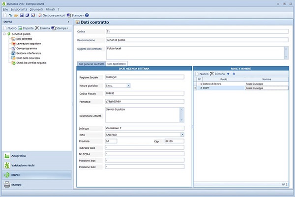 • Definizione degli estremi del contratto con dati generali dell’impresa o del lavoratore autonomo