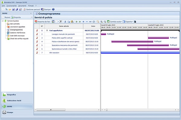 • Elaborazione del cronoprogramma dei lavori di tutte le lavorazioni previste nel contratto al fine di individuare le interferenze presenti