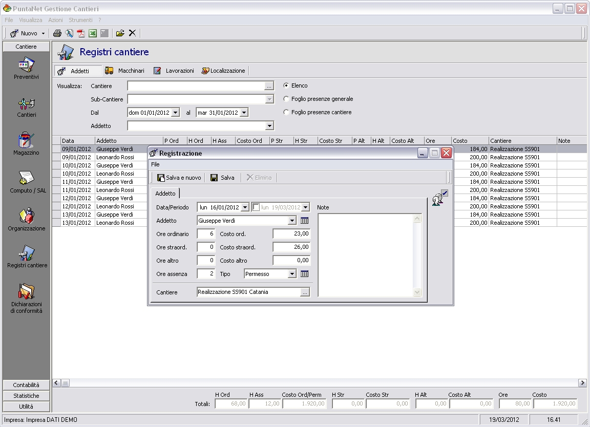Il software è stato progettato dal nostro team con un unico obiettivo, quello di dare all’impresa un gestionale completo che riesca a gestire a 360° tutte le problematiche legate alla gestione quotidiana dell’impresa inglobando in un unico software la gestione amministrativa, cantieristica e del personale.