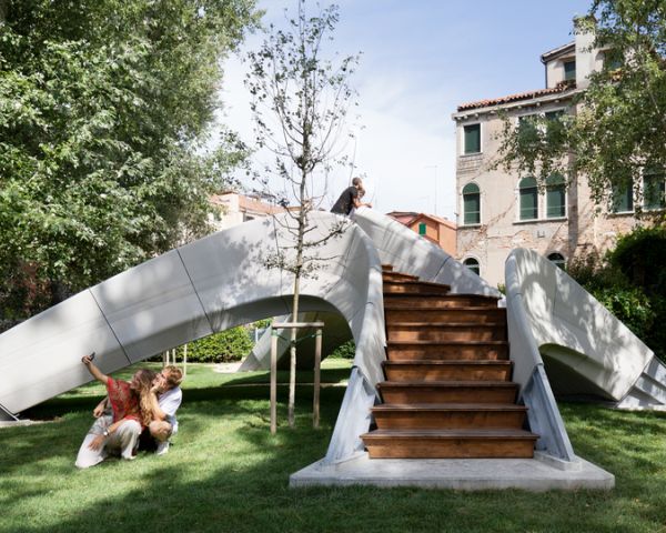 Fino a novembre 2021 Striatus, primo ponte in calcestruzzo stampato in 3D con una tecnica innovativa, senza l’utilizzo di malta, colle o rinforzi, sarà esposto alla Biennale di Venezia. Img by BRG – ©naaro Striatus è una passerella ad arco formata da blocchi di cemento stampati in 3D assemblati senza malta nè rinforzo. Il ponte, prima struttura di questo genere, sarà esposto fino a novembre alla Biennale di Architettura di Venezia ai Giardini della Marinaressa. La passerella di 16×12 metri unisce tecniche costruttive tradizionali con le più avanzate tecnologie di progettazione computazionale, ingegneria e produzione robotica. Hanno partecipato alla realizzazione di “Striatus” Zaha Hadid Architects Computation and Design Group (ZHACODE), Block Research Group (BRG) dell’ETH di Zurigo, in collaborazione con incremental3D (in3D) e Holcim. Il nome Striatus è stato scelto in omaggio alla logica strutturale e di fabbricazione: il calcestruzzo, stampato in strati ortogonali alle principali forze strutturali, crea una struttura “striata” compressa che non richiede malta nè rinforzi. Img by BRG – ©naaro Si tratta di un processo costruttivo alternativo alla costruzione tradizionale del calcestruzzo e potenzialmente molto interessante per il mondo dell’edilizia, che segue la filosofia di “costruire di più con meno”. Striatus infatti ottimizza le proprietà delle strutture in muratura, stampa 3D del calcestruzzo (3DCP) e design, minimizzando gli sprechi e utilizzando solo il materiale necessario. Si tratta di una struttura in calcestruzzo non rinforzato che ottimizza le prestazioni grazie alla geometria. Il calcestruzzo infatti è un materiale che funziona meglio in compressione e che nelle strutture ad arco o a volta, grazie a un apposito software, può essere stampato con precisione, minimizzando gli sprechi e riducendo significativamente il suo impatto ambientale. L’assemblaggio di Striatus – Img by BRG Costruito senza rinforzi e utilizzando l’assemblaggio a secco senza leganti, Striatus può essere installato, smontato, riassemblato e riutilizzato ripetutamente; dimostrando che le tre R della sostenibilità (Ridurre – meno consumo di risorse e dei rifiuti di costruzione, Riutilizzare – non utilizzando alcun legante o colla, il ponte può essere smontato e portato in altri luoghi, Riciclare – Striatus può essere facilmente riciclato minimizzando costi ed energia) possono essere applicate alle strutture in cemento. Milioni di nuovi edifici in tutto il mondo vengono costruiti con cemento armato, anche se questo tipo di costruzione genera grandi quantità di emissioni di CO2, in particolare per l’acciaio utilizzato per l’armatura e il cemento. Grazie a questo progetto i ricercatori dell’ETH hanno dimostrato che si possono ridurre entrambi i materiali. Stampa 3D robotizzata del calcestruzzo Ciò che è completamente nuovo è il tipo di calcestruzzo stampato in 3D, che i ricercatori hanno sviluppato insieme alla società Incremental3D. Il calcestruzzo non è applicato orizzontalmente nel modo usuale, ma invece ad angoli specifici in modo che siano perpendicolari al flusso delle forze di compressione. Questo mantiene gli strati stampati nei blocchi ben pressati , senza la necessità di rinforzi o post-tensioni. L’inchiostro speciale per calcestruzzo per la stampante 3D è stato sviluppato dalla società Holcim proprio per questo progetto. La stampa – Img BRG ©in3d Il professore dell’ETH Philippe Block ha spiegato che “Questo preciso metodo di stampa 3D del calcestruzzo ci permette di combinare i principi della tradizionale costruzione a volta con la fabbricazione digitale del calcestruzzo per utilizzare il materiale solo dove è strutturalmente necessario senza produrre rifiuti”. Consiglia questa notizia ai tuoi amici Commenta questa notizia