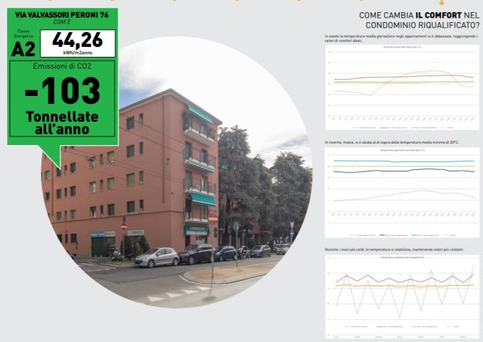 A cura di: Raffaella Capritti Indice degli argomenti: Un intervento di riqualificazione totale dell’involucro Il successo dell’intervento di riqualificazione, parlano i protagonisti A Milano in via Valvassor Peroni 76, zona Lambrate, si è concluso da poco un importante intervento di riqualificazione energetica incentivato dal Superbonus e dal bando BE2, che rappresenta una best practice a livello nazionale. Un edificio che offre l’occasione di capire quanti vantaggi questo importante strumento, introdotto dal Governo per ridare slancio all’economia dopo i due anni di pandemia, garantisca per le famiglie, i condomini, la qualità dell’aria, il comfort abitativo, il risparmio energetico e in bolletta, con tagli del 70%. Un intervento coerente con gli impegni ambiziosi per il clima che l’Unione Europea ha assunto e ha rafforzato, con l’obiettivo di ridurre le emissioni di almeno il 55% entro il 2030 e con il programma del PNRR Piano nazionale di ripresa e resilienza – che prevede investimenti e riforme importanti verso la neutralità climatica al 2050. Va inoltre ricordato che la riqualificazione del patrimonio edilizio, responsabile del 30% circa dell’inquinamento delle nostre città, è un obbligo non prorogabile e gli interventi ben studiati di riqualificazione profonda rappresentano un vantaggio per tutti. Un intervento di riqualificazione totale dell’involucro L’intervento di riqualificazione in via Valvassori Peroni a Milano è stato promosso e realizzato da Teicos, finanziato da Intesa Sanpaolo e Deloitte ha fornito assistenza consulenziale e fiscale. I lavori hanno previsto l’isolamento termico completo dell’involucro, la riqualificazione dei balconi e la bonifica dell’amianto nelle cantine e delle FAV nel sottotetto. Sono stati inoltre installati un impianto fotovoltaico in copertura con una potenza di 19,2 kW, a servizio delle utenze condominiali e nuovi sistemi oscuranti. Come sappiamo, per poter accedere al Superbonus è necessario il miglioramento di almeno 2 classi di efficienza energetica, dimostrabile tramite APE pre e post opera. In questo caso il passaggio è stato addirittura di 4 classi: l’edificio infatti è passato dalla D alla A2, con una serie di importanti vantaggi per i condomini e l’ambiente. Per l’isolamento delle superfici orizzontali e verticali è stata utilizzata la lana di roccia che vanta ottime prestazioni, anche di resistenza al fuoco. Molti dei condomini hanno inoltre colto l’occasione per sostituire gli infissi. Per quanto riguarda le prestazioni, al termine dei lavori la riduzione del fabbisogno è stata del 65%, il fabbisogno annuo di energia è passato da 142,30 kWh/m2 a 49,86 kWh/m2 e ogni anno verranno risparmiati 88.000 Kg di CO2, è come se, a livello di qualità dell’aria, fossero stati piantati nella zona 890 nuovi alberi d’alto fusto. Il condominio ha guadagnato 4 classi di efficienza energetica dopo i lavori di riqualificazione Tutto ciò ha garantito un sensibile miglioramento del comfort abitativo sia in estate che in inverno. Le temperature interne agli appartamenti nei mesi più caldi non superano infatti i 26°, un bel miglioramento rispetto ai 29/30° pre intervento. La nuova stagione termica permette inoltre di regolare l’impianto in inverno in base ai nuovi fabbisogni degli inquilini. Anche qui c’è stata un’importante ottimizzazione: a parità di funzionamento dell’impianto, le temperature sono passate da 17 a 21°. Infine il palazzo ne ha guadagnato anche da un punto di vista architettonico. Grazie al bando BE2 promosso dal Comune di Milano che ha fornito un contributo del 25% a fondo perduto e al Superbonus, a fronte di una spesa totale di 2.249.395 euro, i condòmini hanno dovuto sostenere singolarmente una spesa minima di circa 2.600 euro. Il successo dell’intervento di riqualificazione, parlano i protagonisti E’ giustamente orgogliosa e soddisfatta l’Arch. Cecilia Hugony, Amministratore Delegato Teicos Group che ha ricordato che il successo di questo intervento, realizzato in tempi brevissimi considerandone la complessità (2 anni dall’inizio della progettazione a fine esecuzione) è certamente legato all’incredibile collaborazione tra tutti gli attori coinvolti. “I condomini coraggiosi che hanno aderito quando le norme non erano così chiare come ora, collaborando con gli architetti e ingegneri energetici durante gli incontri Teicos di progettazione partecipata CoREN®, ampliando gli obiettivi iniziali; lo Studio di amministrazione, il Comune di Milano che ha supportato il progetto con il bando BE2, Banca Intesa che ha finanziato la componente con sconto in fattura e Deloitte che è stato prezioso per capire come muoversi nella complessità”. Durante la conferenza stampa il Senatore Antonio Misiani – che da viceministro dell’economia ha contribuito all’approvazione dell’incentivo – ha sottolineato che il Governo ha messo in campo interventi di emergenza, lavorando però anche in prospettiva con misure che rilanciassero lo sviluppo del paese a partire dall’edilizia, tra i settori più importanti del nostro sistema economico, che ha patito dieci anni di ininterrotta crisi a partire dal 2008 ma che oggi, grazie anche al Superbonus ha già superato i livelli produttivi pre covid e vive una stagione di crescita. Il Senatore Antonio Misiani e l’Arch. Cecilia Hugony “Non possiamo accontentarci di tornare all’Italia del 2019, siamo in una fase di grande ripresa, ma questo è il momento di porre le basi per un diverso modello di sviluppo e questi interventi vanno proprio in questa direzione perché riducono drasticamente il consumo di energia e le emissioni. Sono interventi che fanno risparmiare alle famiglie perché le bollette dei condomini si riducono sensibilmente. Risparmio oggi ancor più importante considerando l’esplosione dei prezzi del petrolio e del gas, che dimostra che la transizione ecologica può anche migliorare la condizione economica del