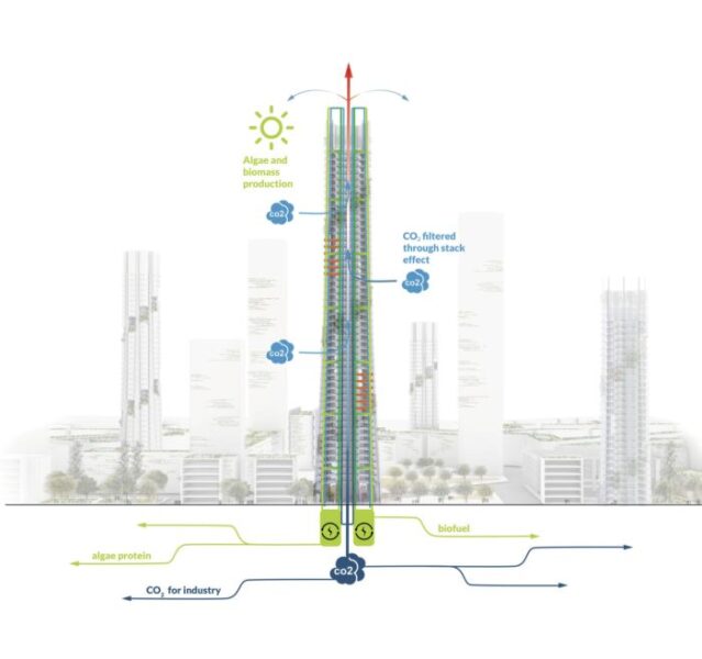 Combinando tecniche di progettazione sostenibile, riducendo al minimo i materiali, integrandoli con biomateriali e utilizzando tecnologie avanzate di cattura del carbonio, la concept tower Urban Sequoia può contribuire a ridurre l’inquinamento. a cura di Tommaso Tautonico Indice degli argomenti: L’impatto del settore edile Un grattacielo assorbe quanto 48.500 alberi E se il settore delle costruzioni rappresentasse una soluzione alla crisi climatica, piuttosto che parte del problema? E se gli edifici potessero agire come alberi, catturando il carbonio, purificando l’aria e rigenerando l’ambiente? Prendendo ispirazione dai processi e dagli ecosistemi naturali, lo studio di architettura skidmore, owings & merrill (SOM), ha presentato durante la Cop26 di Glasgow, il concept Urban Sequoia. Una “foresta” di edifici in grado di sequestrare il carbonio e produrre biomateriale, creando una nuova economia del carbonio e un ambiente urbano resiliente. “Stiamo evolvendo rapidamente, superando l’idea di essere carbon neutral” dichiara Chris Cooper, partner di SOM. “Non è più tempo di parlare di neutralità climatica. La nostra proposta Urban Sequoia rende gli edifici, e quindi le nostre città, parte della soluzione al problema della crisi climatica. Gli immobili sono progettati per sequestrare il carbonio, divenendo protagonisti del cambiamento climatico” conclude. L’impatto del settore edile Il settore delle costruzioni genera il 40% delle emissioni di CO2. Eppure la popolazione urbana continuerà a crescere nei prossimi decenni e le previsioni stimano che entro il 2060 saranno necessari altri 230 miliardi di metri quadrati di nuovo parco edilizio. Per questo gli architetti di SOM hanno sviluppato un prototipo di grattacielo capace di assorbire il carbonio in atmosfera a un ritmo senza precedenti. Il team spiega che la proposta dietro il concept di Urban Sequoia riunisce diversi filoni del pensiero progettuale sostenibile, le ultime innovazioni e le tecnologie emergenti per applicarle all’edilizia su larga scala. Ottimizzando la progettazione degli edifici, riducendo al minimo i materiali, aumentando l’utilizzo di biomateriali e tecnologie di cattura del carbonio, la Urban Sequoia di SOM è in grado di catturare una quantità di carbonio maggiore rispetto a quella che si otterrebbe applicando queste tecniche separatamente. “È un percorso verso un futuro più sostenibile” dichiara Kent Jackson, partner di SOM. “Immaginiamo un mondo in cui un edificio può aiutarci a guarire il pianeta. Abbiamo sviluppato la nostra idea in modo che potesse essere applicata e adattata per soddisfare le esigenze di qualsiasi città del mondo, con un potenziale impatto positivo su qualunque tipo di costruzione” conclude. Un grattacielo che assorbe quanto 48.500 alberi Urban Sequoia si configura come un grattacielo in grado di sequestrare fino a 1.000 tonnellate di carbonio all’anno, equivalenti a 48.500 alberi. Il design incorpora soluzioni e materiali basati sulla natura, che utilizzano molto meno carbonio rispetto ai materiali tradizionali. Materiali come il bio-mattone, il cemento di canapa, il legno e le biocrete (bio-calcestruzzo) riducono del 50% l’impronta di carbonio della costruzione. Con queste soluzioni, fanno sapere gli architetti, si andrebbe ben oltre il concetto di “zero emissioni nette”, realizzando edifici che sottraggono il carbonio dall’atmosfera. Secondo il team di SOM, dopo 60 anni, il prototipo potrebbe arrivare ad assorbire fino al 400% in più di carbonio, mettendolo a disposizione per varie applicazioni industriali, completando il ciclo del carbonio stesso e gettando le basi per una nuova economia basata sulla sua rimozione. Grazie all’utilizzo di biomassa e delle alghe, integrate nelle facciate, l’edificio potrebbero trasformarsi in una fonte di biocarburante in grado di alimentare sistemi di riscaldamento, automobili e aeroplani. Secondo SOM, se ogni città del mondo costruisse una Urban Sequoia, il settore delle costruzioni potrebbe rimuovere fino a 1,6 miliardi di tonnellate di carbonio dall’atmosfera ogni anno. Img by SOM Consiglia questa notizia ai tuoi amici Commenta questa notizia